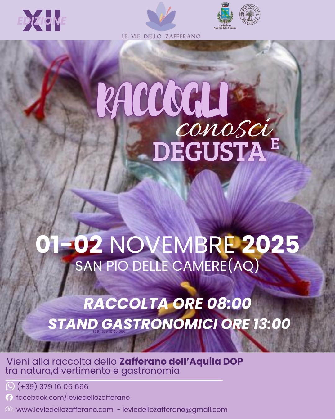 Tra natura, tradizione e sapori autentici, torna la dodicesima edizione dell’evento. Un’occasione unica per vivere da vicino l’oro rosso d’Abruzzo: lo Zafferano dell’Aquila DOP.